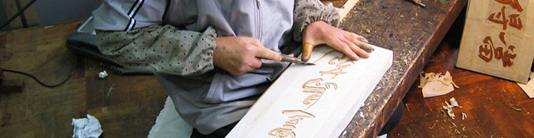 明治44年以降、彫刻を施した木の看板や浮き出した文字や金箔加工をした看板、銅板や緑青を用いた看板等、長年の経験でお客様に相応しい看板を製作いたします。