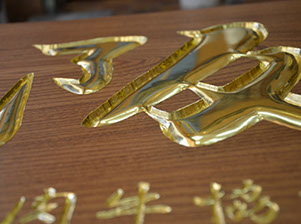 明治44年以降、彫刻を施した木の看板や浮き出した文字や金箔加工をした看板、銅板や緑青を用いた看板等、長年の経験でお客様に相応しい看板を製作いたします。